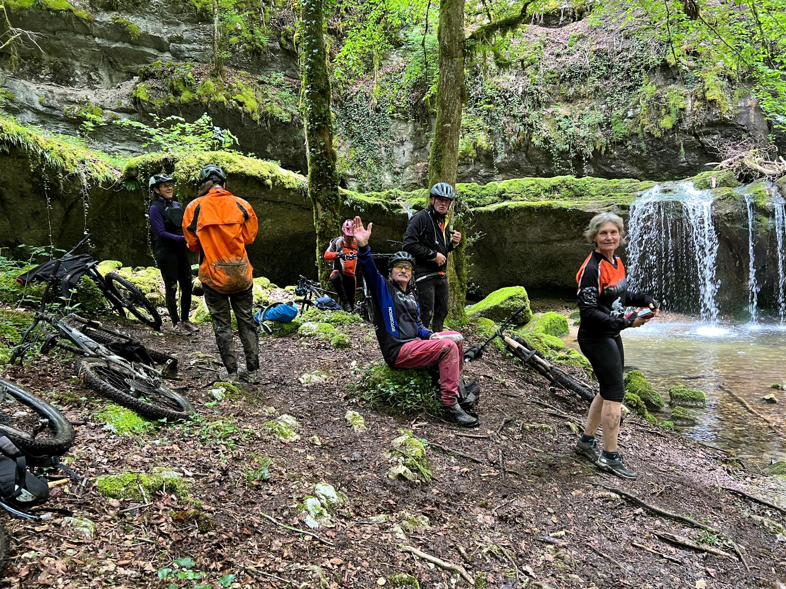 Pause enchantée à la mi-journée : une cascade féérique, un décor typiquement jurassien… et du comté évidemment. Le carburant local.