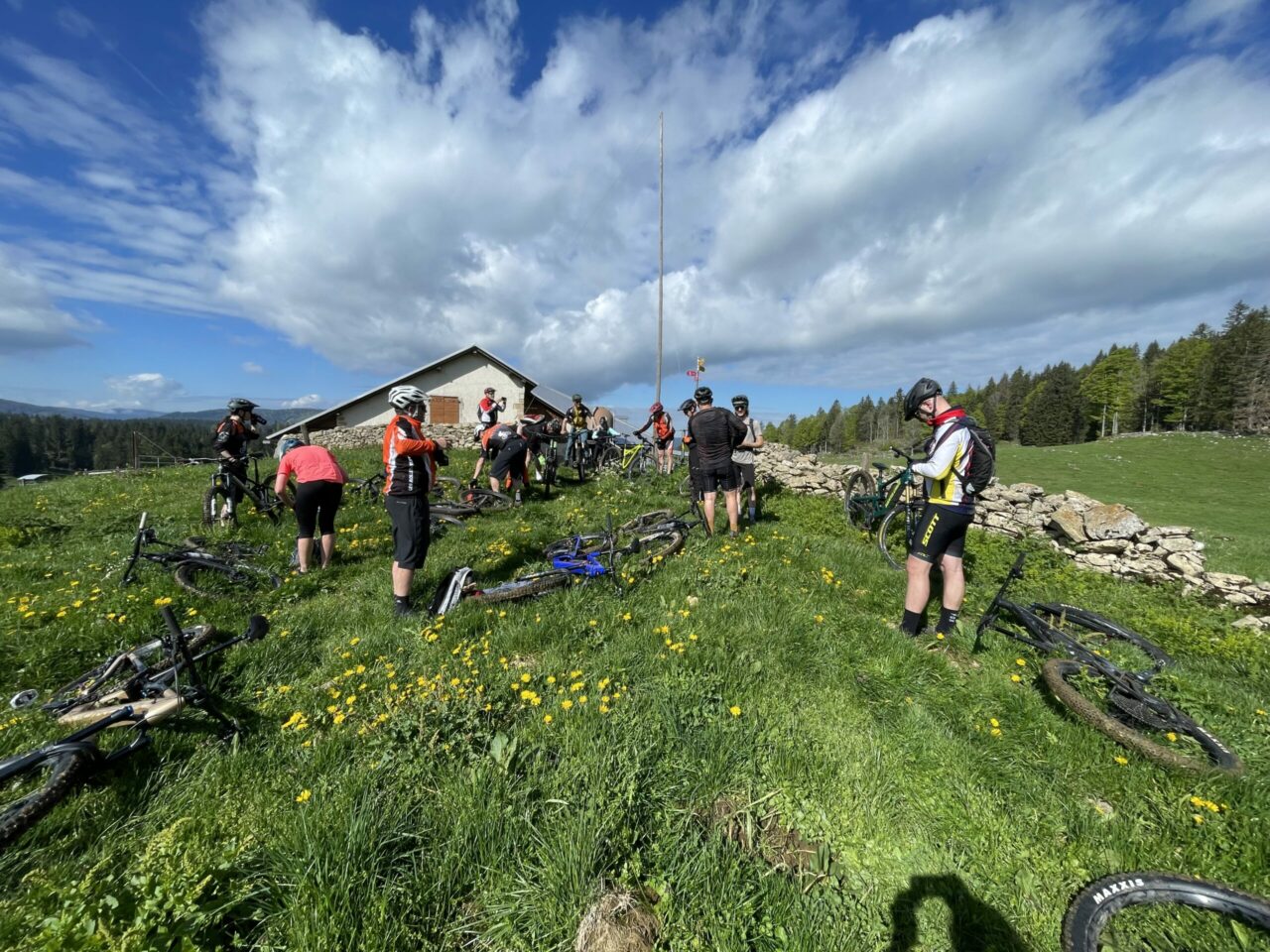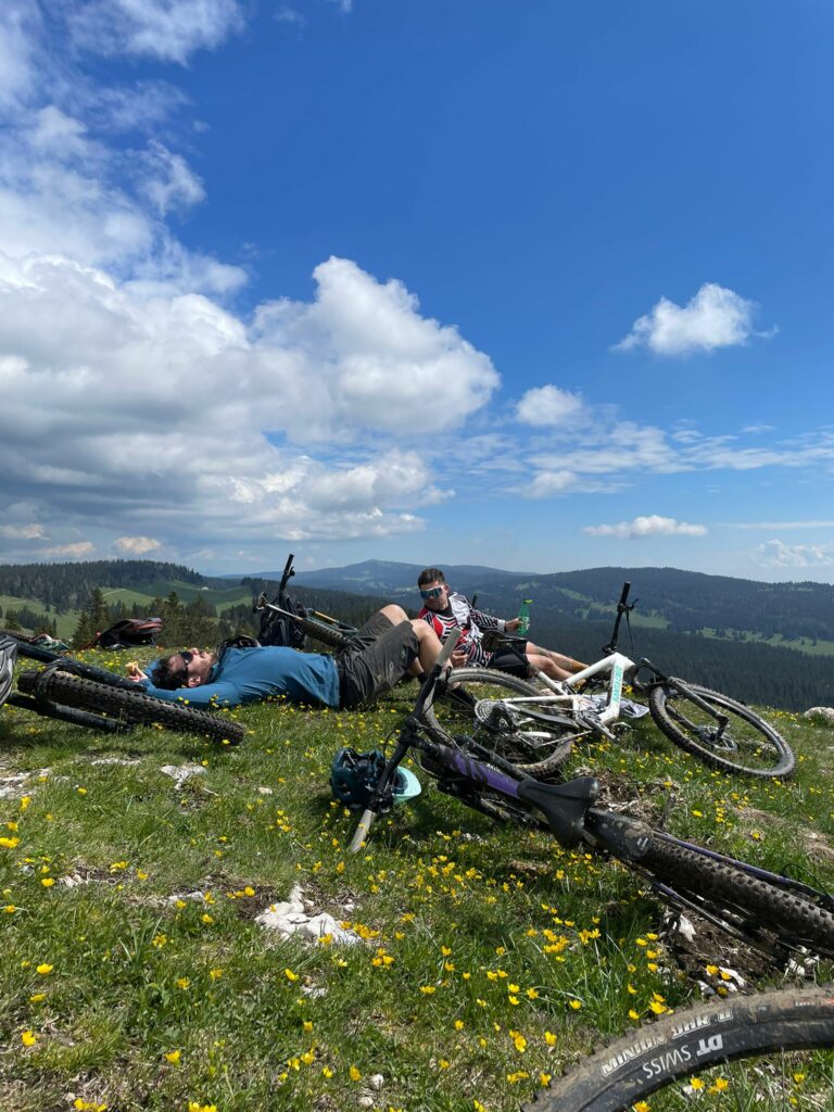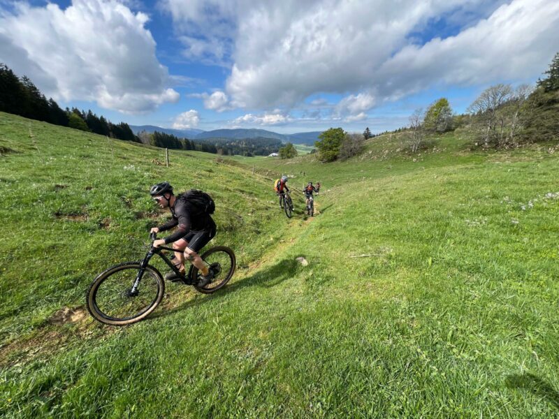Après quelques minutes d’attente au shop de Jura Sick Guide, nous enfourchons nos montures à 10 h. Au programme : 40 km et 1000 m de D+. Une sortie qu’on fait les yeux fermés le dimanche matin, normalement. Mais cette fois… c’était une autre histoire.