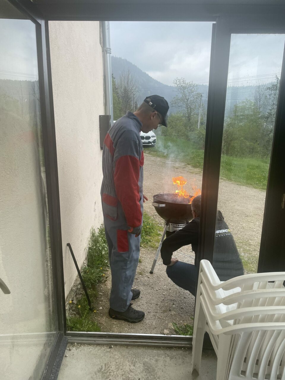 On commence le séjour en prenant des forces à bases de boissons énergisantes et un barbecue légèrement humide.