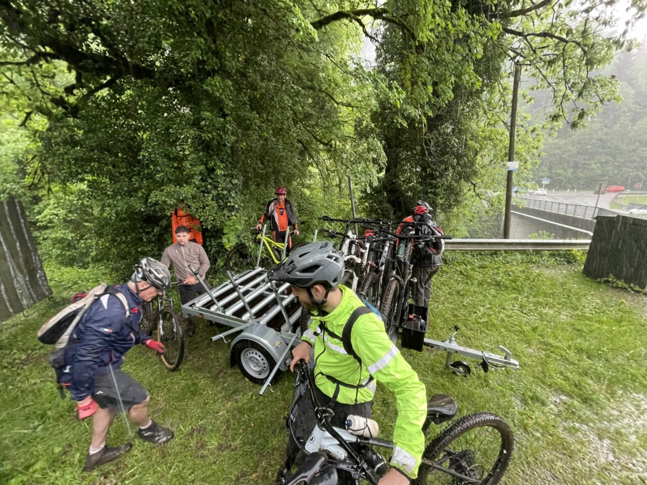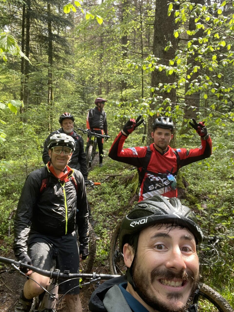 La météo s’en mêle : grêle, averses, boue collante, descentes techniques et glissades en série. On a tout donné, entre portage, patinage et quelques moments de grâce sur la selle. Le VTT avait un air de cyclo-cross !